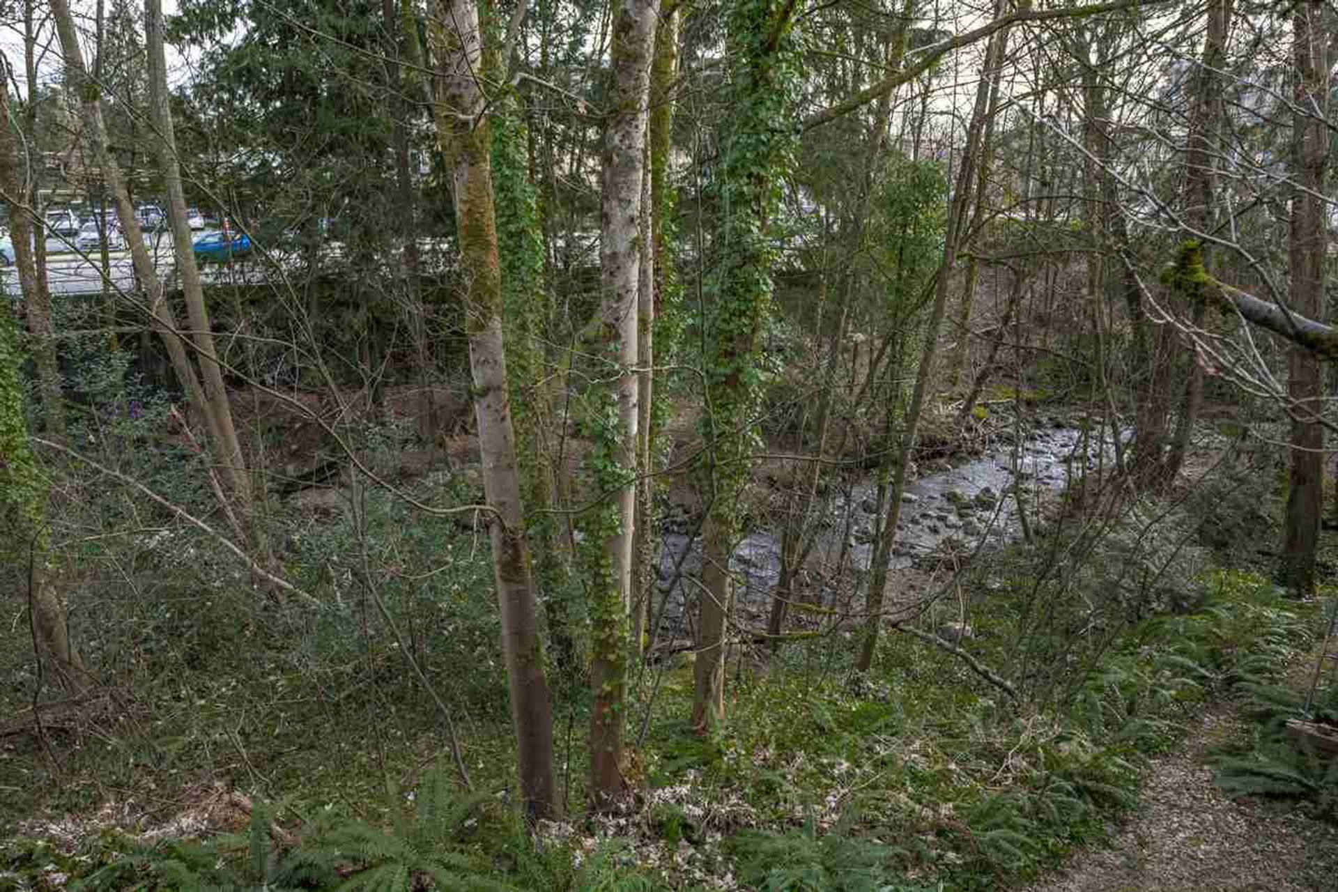 - View: Treed greenbelt & creek