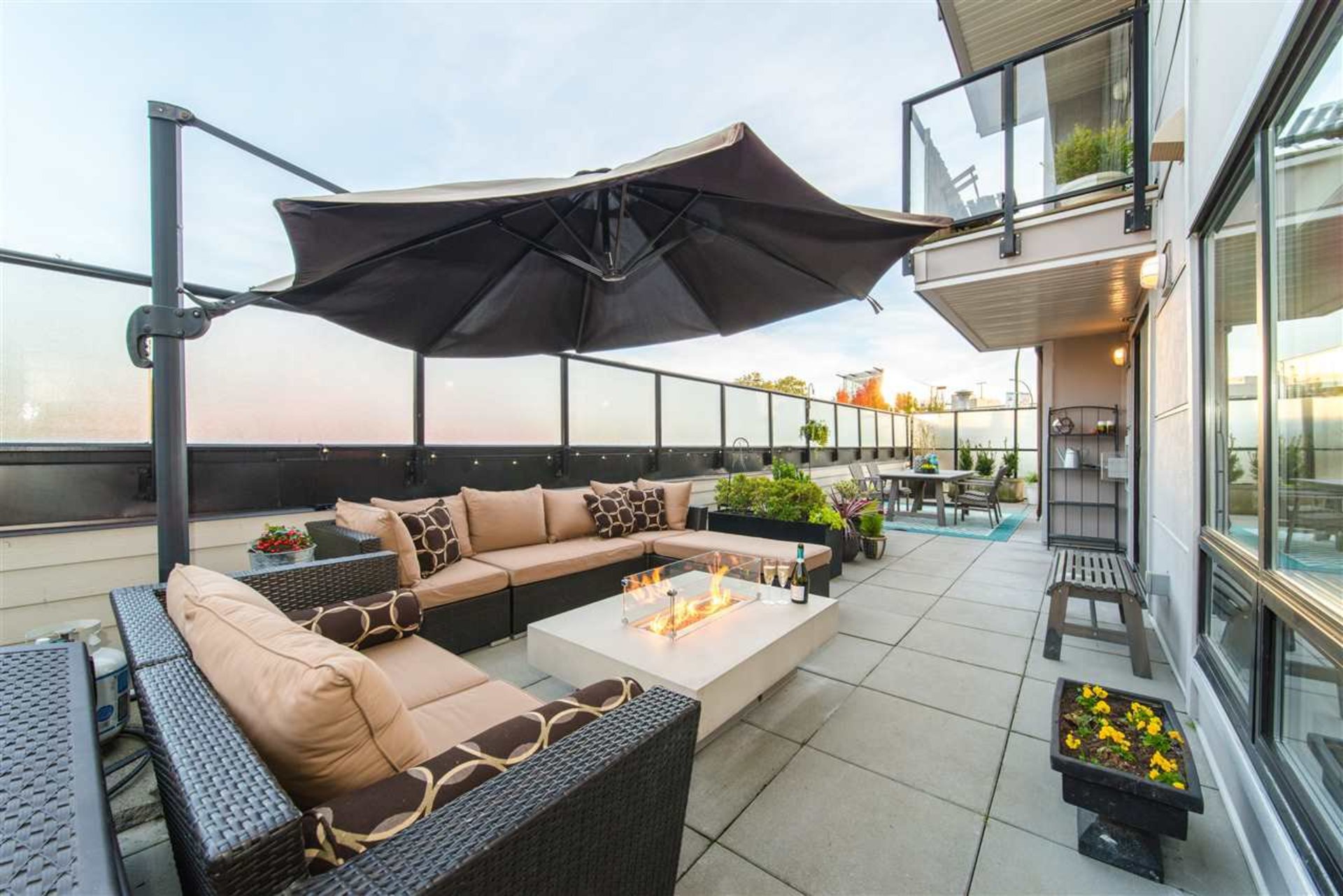 This is a rare find! 2 bed/2 bath/den at Gateway, one of North Vans few boutique buildings. The suite boasts an enormous, fully furnished 1000 sqft. private patio w/ a high end outdoor kitchen & fireplace. An entertainers dream & perfect for those who have a green thumb & enjoy condo living. The stunning interior offers a functional & flexible open concept floorplan. The kitchen is sleek & modern w/ S/S appliances, gas range, over-sized sink & chef&rsq…uo;s faucet. The bedrooms offer privacy from the living/dining spaces, w/additional patio access from the master. This unit has been owner occupied & meticulously maintained, w/ new flooring & paint. Pet/rental friendly. 1 parking/storage included. Steps away from a plethora of shops, restaurants, transit & Grouse mountain.